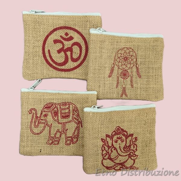 F-BIZ12 – Borsellino in iuta con zip 12×11 cm. circa soggetti assortiti Made in India