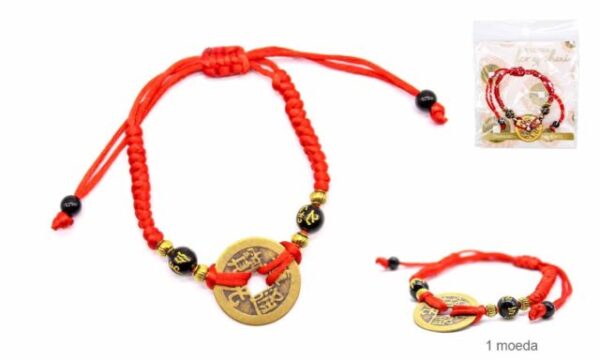FS-74250 – Braccialetto in cotone rosso con moneta Feng Shui