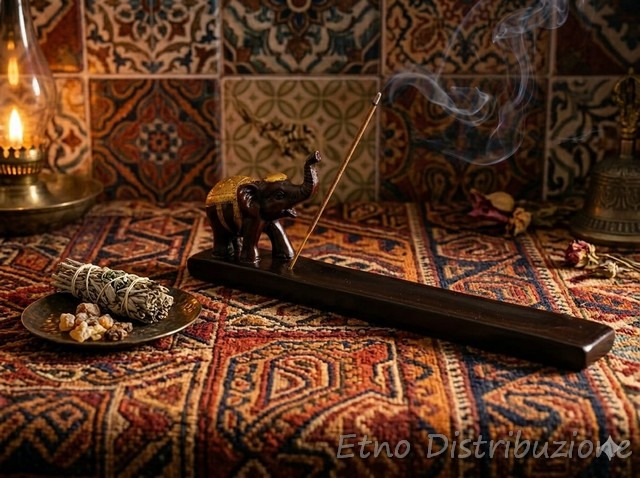 F-BI25 – Brucia incensi in resina marrone soggetto elefante cm. 25 Made in Indonesia