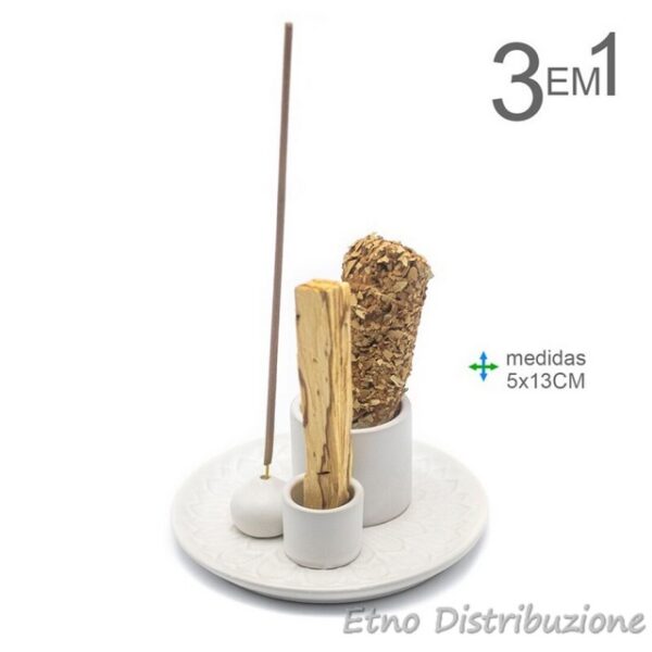 QC-78885 – Bruciatore in ceramica 3 in uno: incenso in stick, palo santo e smudge. cm. 5×13
