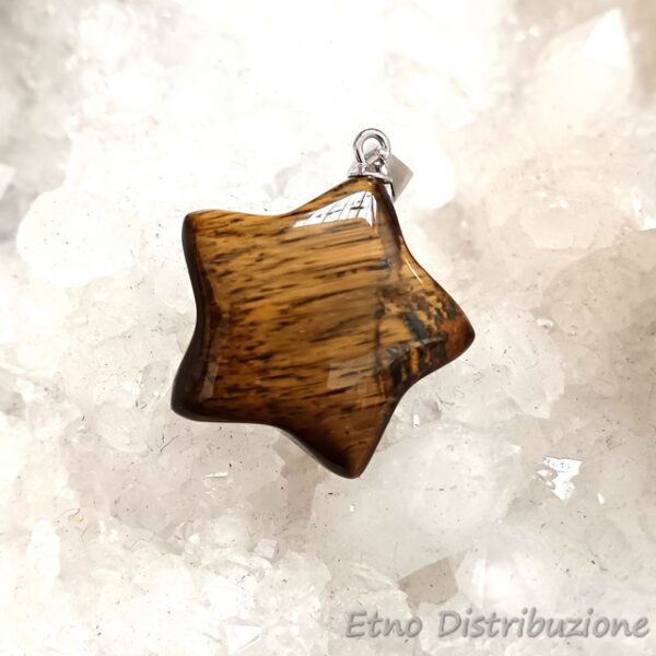 CSOTA – Ciondolo a forma di stella in occhio di tigre con gancio in argento cm. 2×2