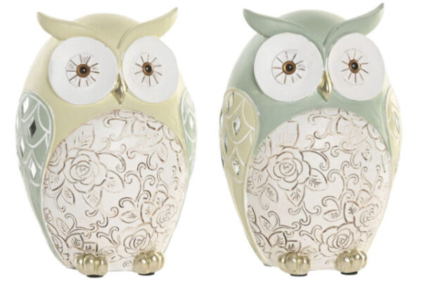 FD-222723 – Gufo in resina ovale colori pastello e decorato con specchietti