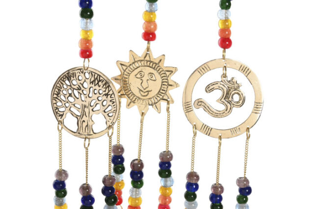 DH-219680 – Pendente in ottone con campanelle e perline colorate dimensioni: cm. 32×6