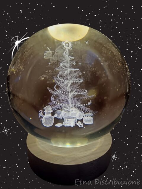 TB19406 – Sfera in vetro con figura interna tridimensionale su base legno con illuminazione a led attacco Usb completa di interruttore a filo.