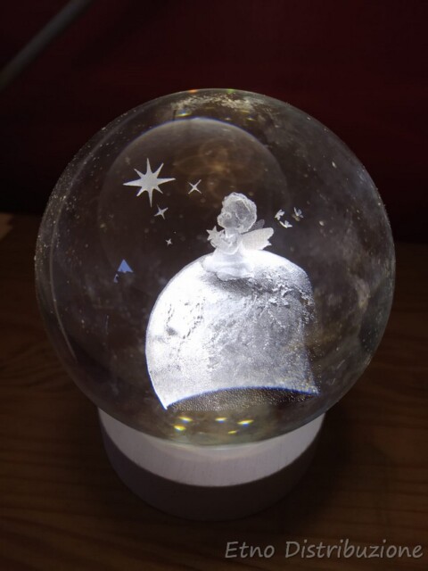 TB19581 – Sfera luminosa in vetro con soggetto 3D Angelo su Pianeta